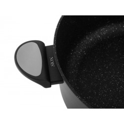Ergonomiczne uchwyty z powłoką soft-touch nie nagrzewają się podczas gotowania. Garnek nie jest przeznaczony do użytku w piekarniku. Nadaje się do wszystkich rodzajów kuchenek: gazowej, elektrycznej, indukcyjnej. Należy korzystać z palnika o średnicy odpowiadającej wymiarom dna naczynia. Gwarantuje to szybkie przygotowanie potrawy, oszczędność energii oraz długą żywotność naczynia. W przypadku kuchenek gazowych płomień palnika powinien nagrzewać tylko 2/3 średnicy dna naczynia, a nie jego ścianki. Wówczas plastik na uchwytach nie ulegnie stopieniu.